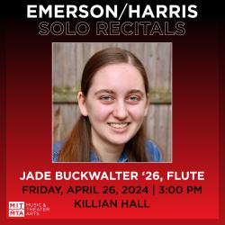 Jade Buckwalter is a sophomore at MIT studying computer science and mathematics. She currently studies with Sue-Ellen Hershman-Tcherepnin through the MIT Emerson/Harris Scholarship program, and previously studied with Ashley Addington. In addition to preparing solo repertoire, Jade plays flute in the MIT Symphony Orchestra. She has also participated in MIT's Chamber Music Society, played in the Institooters (MIT's IAP flute ensemble), and taken music theory classes at MIT. In her spare time, you can find Jade arranging music, writing code, playing board games, and doing crosswords.